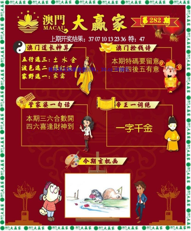 282期:三行生肖╠水金土╣开:牛41准 |